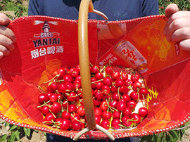 尝一尝咱们远近文明的烟台大樱桃,酸甜爽口。