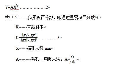 根据入磨物料粒度筛析,利用粒度特性方程式,求出通过量累积百分数80%和95%时物料粒径大小或任意粒径大小的累积百分数,供配球时使用。
