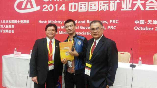 2014年10月22日由国土资源部、天津市人民政府、中国矿业联合会共同举办的2014第十六届中国国际矿业大会于10月20日至23日在天津梅江会展中心举行,烟台金鹏矿业集团董事长于建环携苏惠民副总、许庆砚副总、何怀海副总等人参加了此次盛会。