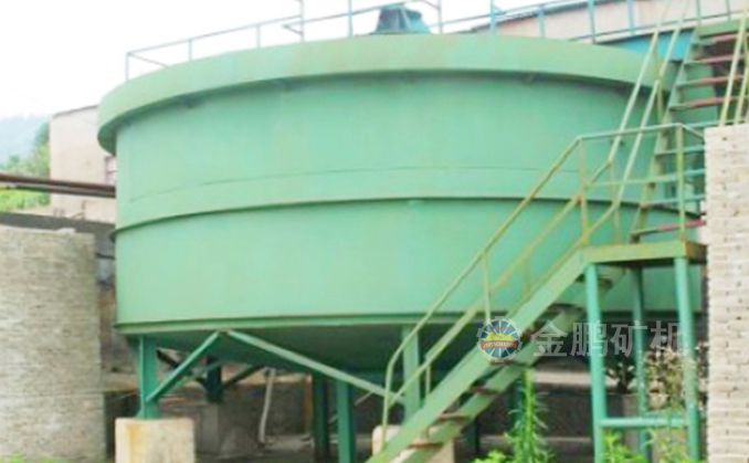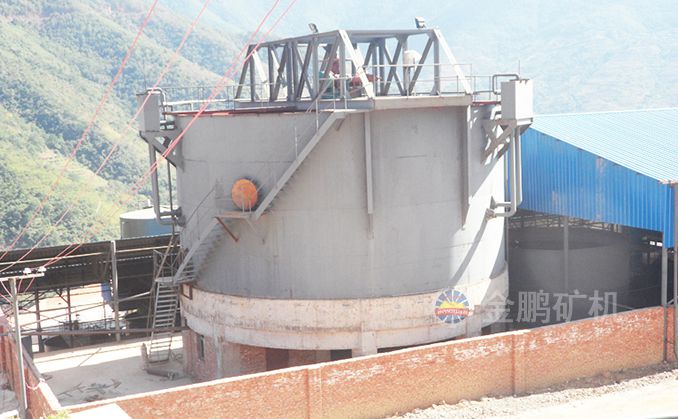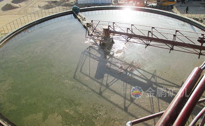 矿浆由给矿筒给入,自由沉降于耙子区的矿浆受刮板的压力进一步浓缩,由耙子逐渐刮向池子中心,由排矿口靠重力排入下一层池子中,清水经分配箱进入最下层对物料进行洗涤,最下层的溢流返回分配箱进入上层对物料进行洗涤,第一层的溢流经溢流堰排出,经两次洗涤的物料经底部排出.
