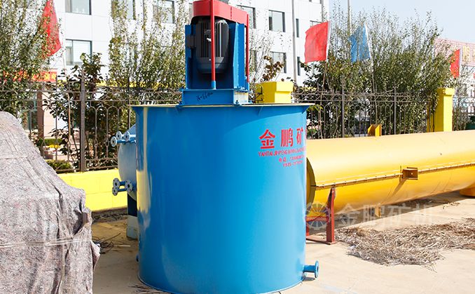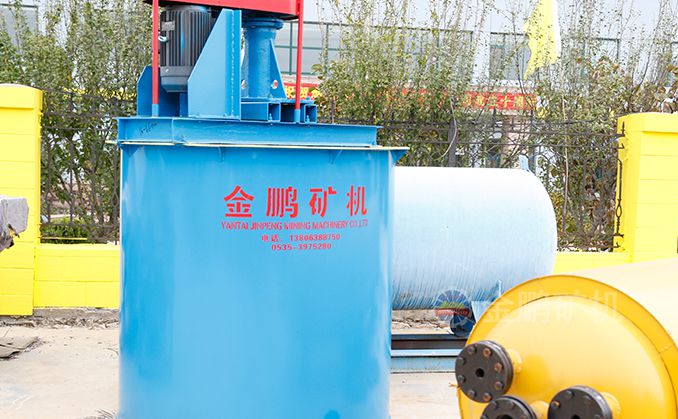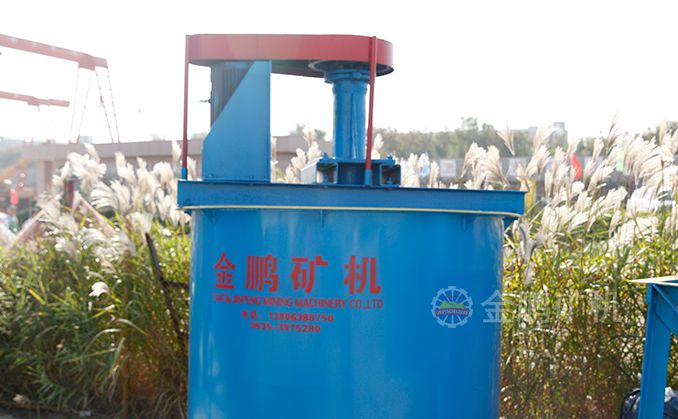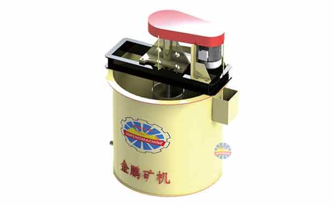 搅拌槽由主轴部件、架子、槽体部、循环桶、电动机、电动机座组成。叶轮的旋转是由电动机通过皮带轮、三角带而得到叶轮的旋转使矿浆和药剂搅拌均匀。
