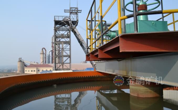 1、浓度计;2、流量计;3、耙子驱动和提升轴;4、混合搅拌器;5、砂浆和絮凝剂混合筒;6、浓相界面传感器;7、可调速絮凝剂泵;8、絮凝剂贮槽;9、溢流液泵;10、溢流液中间槽;11、浓相界面与底流浓度控制联锁流量计;12、底流气动隔膜泵l13、耙子;14倾斜板