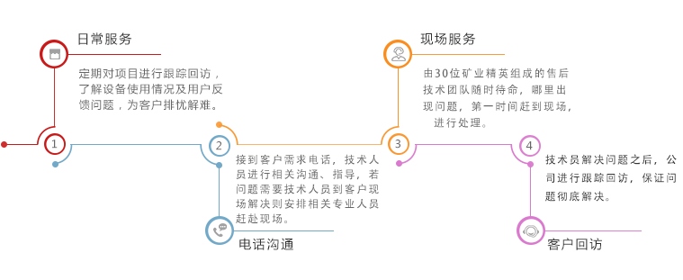 金鹏集团售后服务团队由30位经验丰富的技术人员组成,其中不乏从矿上返聘的有20 多年经验的老专家、资深技术员,国内承诺24小时内到达,国外(不包括办理护照的时间)48小时 内到达,短时间内解决问题,减少客户损失。