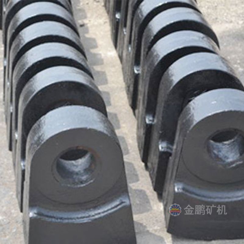高锰钢锤头:高锰钢破碎机锤头韧性好,工艺性好,价格低,其主要特点是在较大的冲击或接触应力的作用下,表面层将迅速产生加工硬化,其加工硬化指数比其它材料高5—7倍,耐磨性得到较大的提高。
